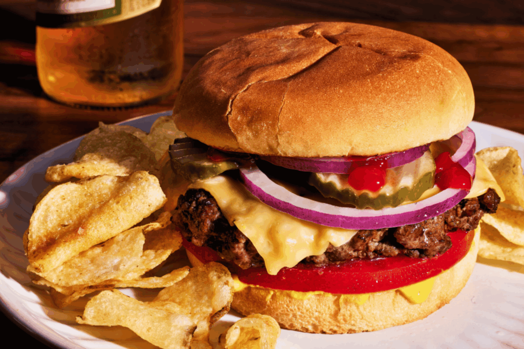 Coach: Handmade Patty topped with Pickles, Cheddar Cheese, Bacon, Fried Onions, and our Homemade Smokehouse Sauce.